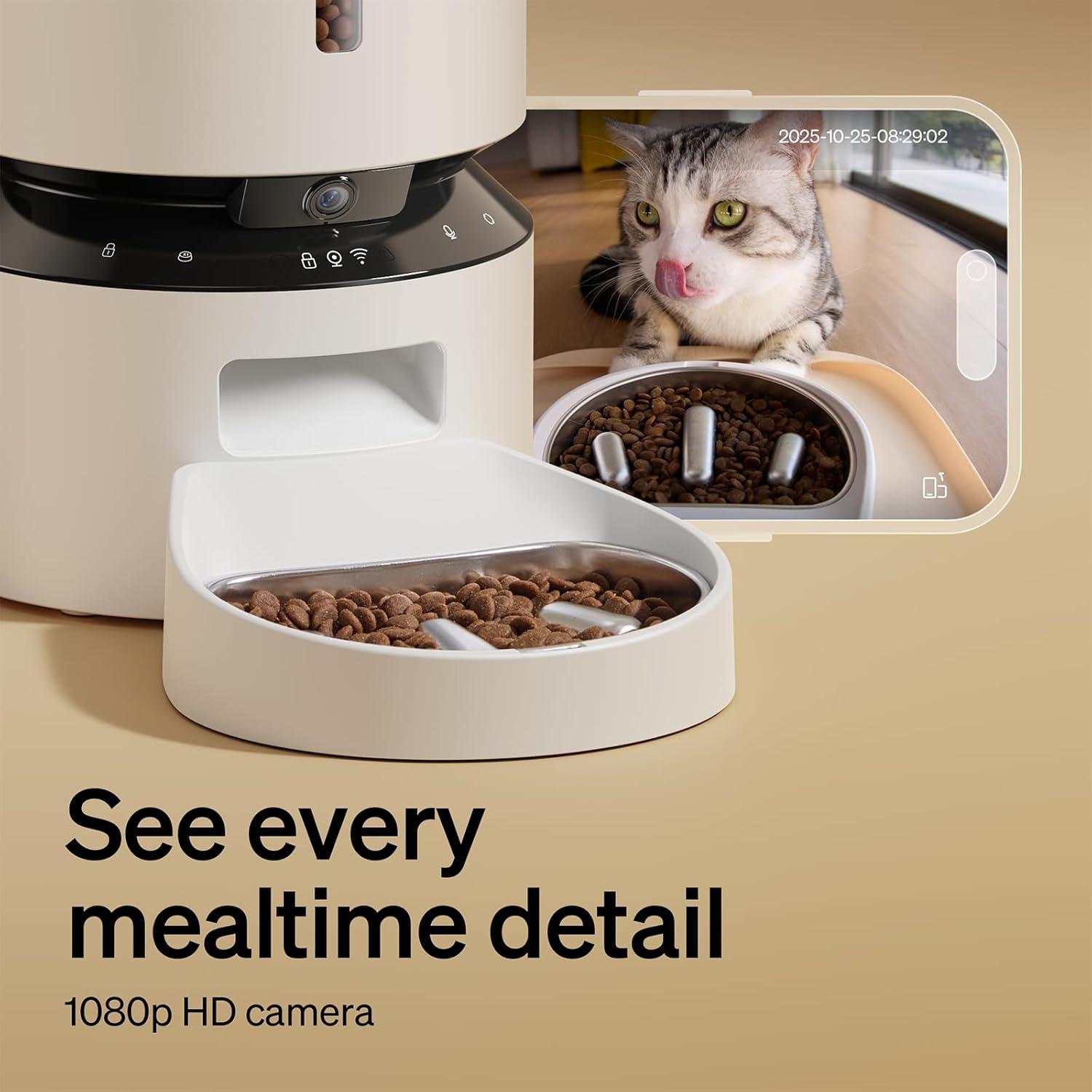 PETLIBRO Automatic Cat Feeder with Camera, Auto Pet Food Dispenser Slow Feeder Dog Bowl 1080P HD Video with Night Vision 5G WiFi Pet Feeder with 2-Way Audio, Stainless Steel Slow Food Tray