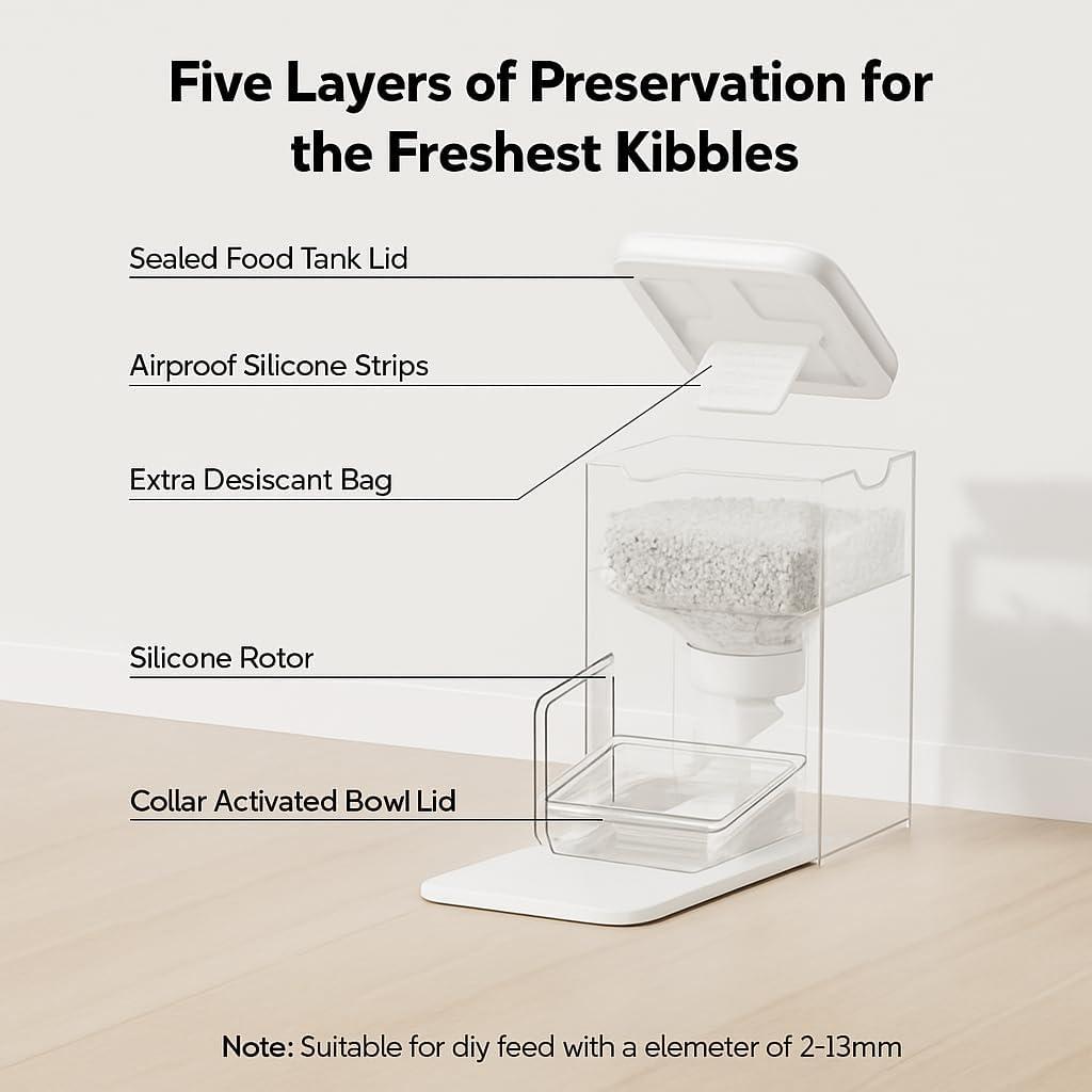 Cat Recognition for Personalized Meals: This Petlibro automatic cat feeder identifies your cat via a lightweight RFID collar tag sensor and unlocks the food bowl lid. Adjust the lid speed to suit your cat's comfort level. (Only supports the included RFID collar tag.)
